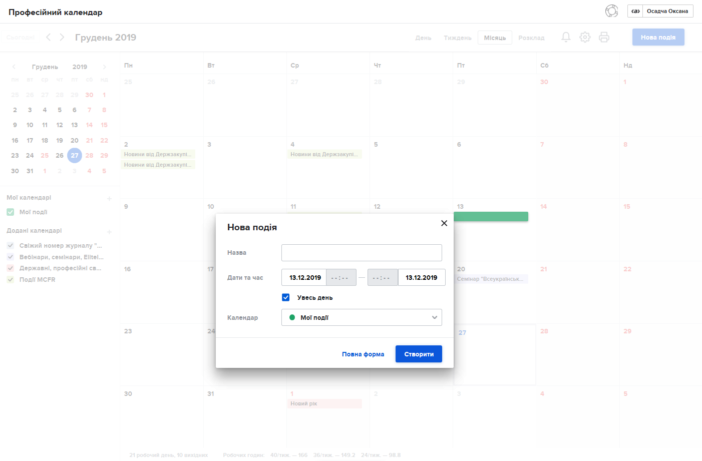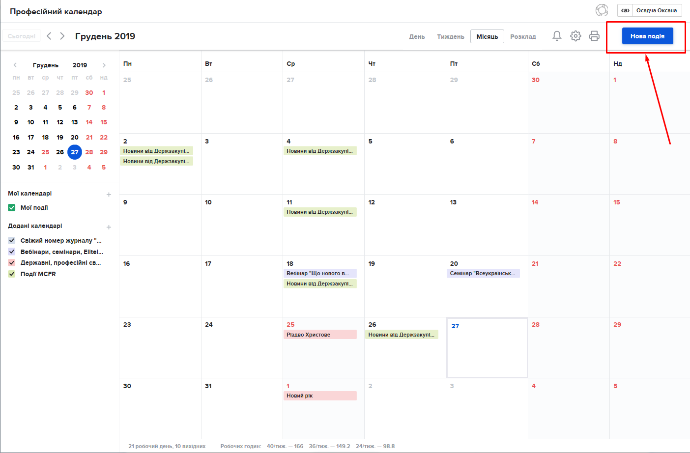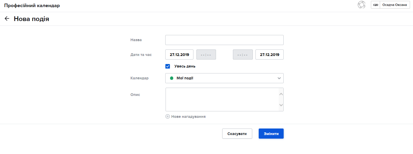 Спосіб 2. Натисніть на кнопку «Нова подія» і запишіть свої справи у вікні, що відкрилося.