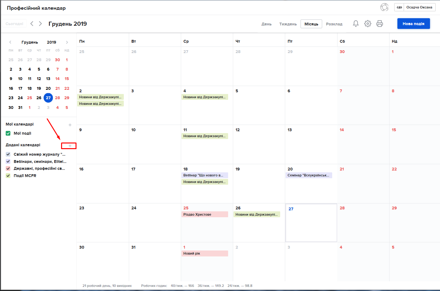Крок 1. Натисніть на знак «+» у розділі «Додані календарі».