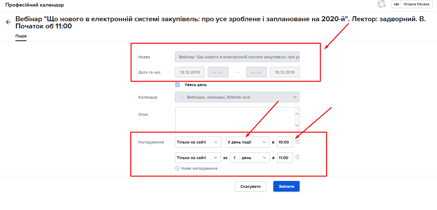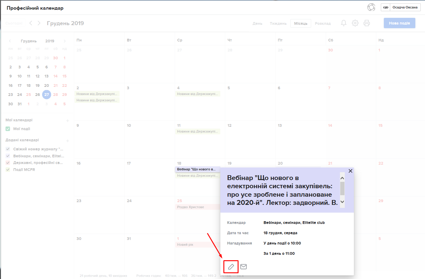Крок 1. Клікніть на подію в календарі і натисніть на олівець.